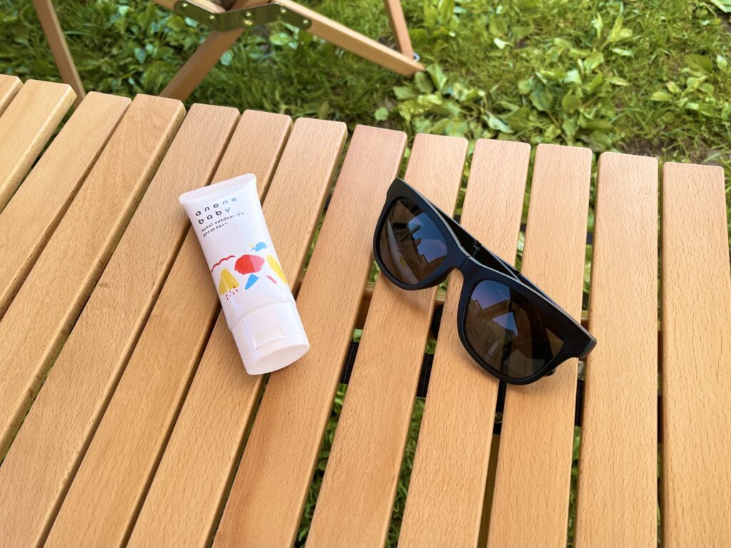 今回は、紫外線の強いキャンプ場のため、帽子も併用して朝昼の2回日焼け止めを塗ってみました。